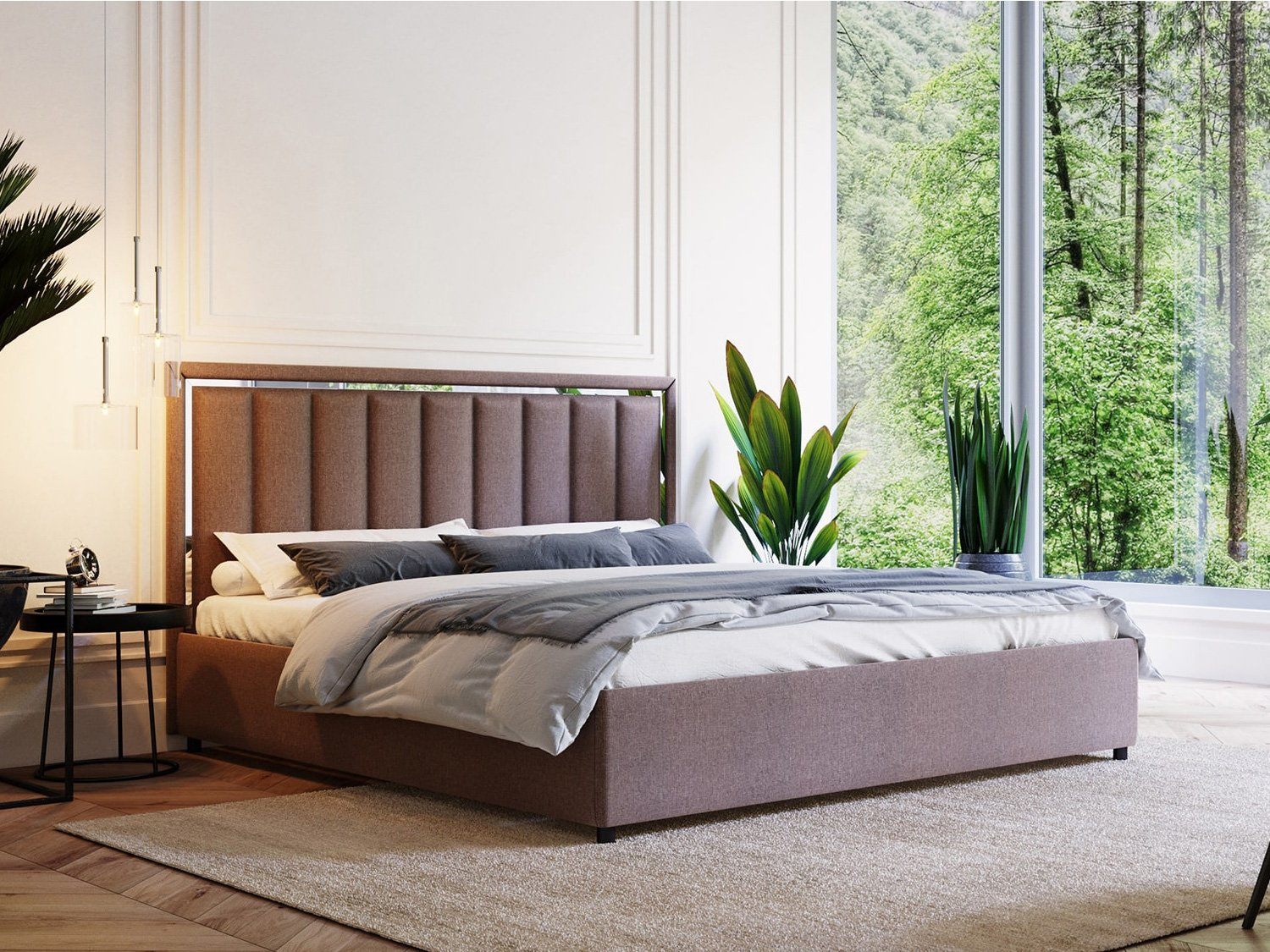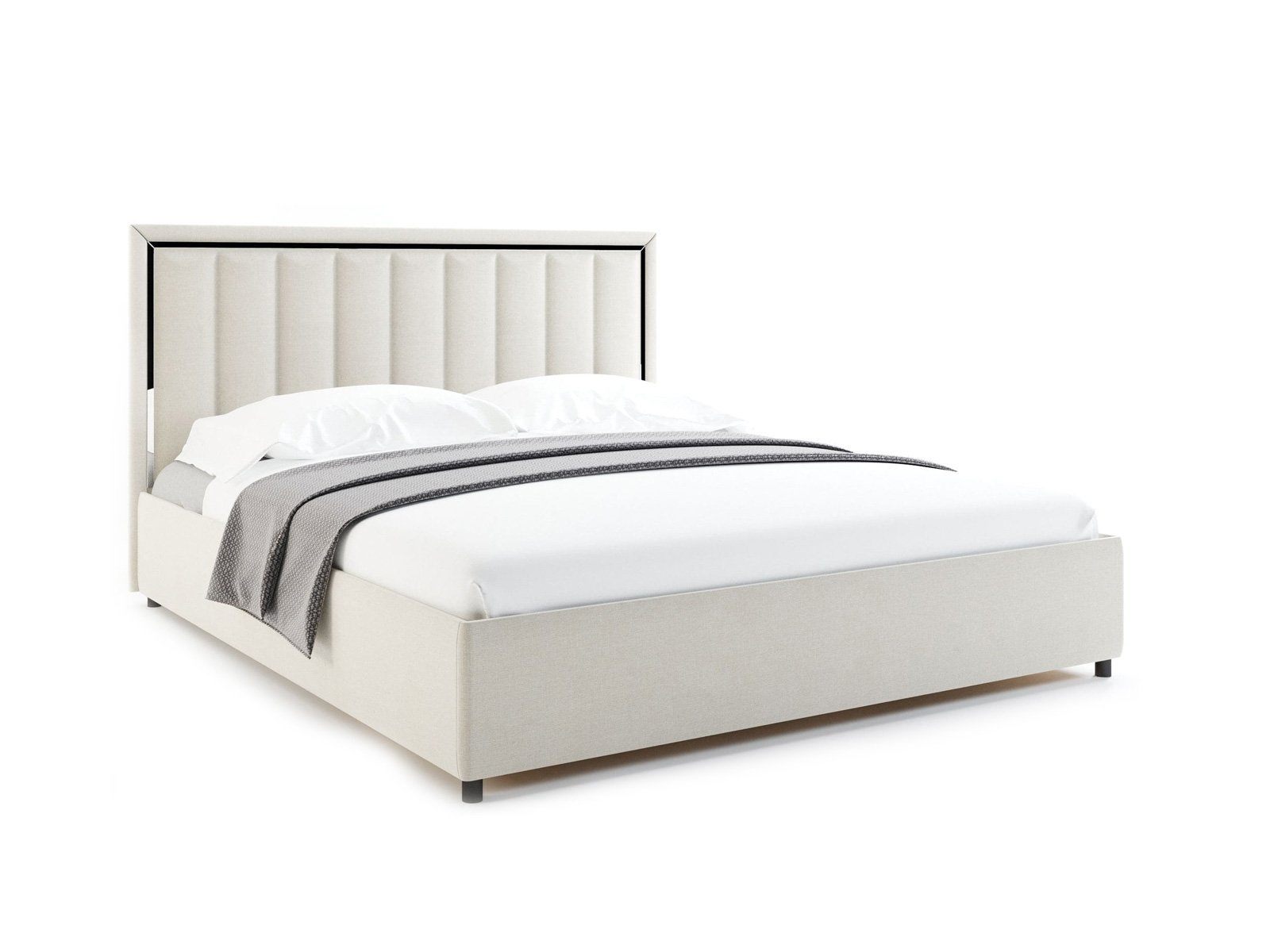 Вивальди — изящная кровать в современном стиле. Изюминка модели — высокое мягкое изголовье с вертикальными стяжками и зеркальной вставкой по периметру, которая создает яркие блики на свету.