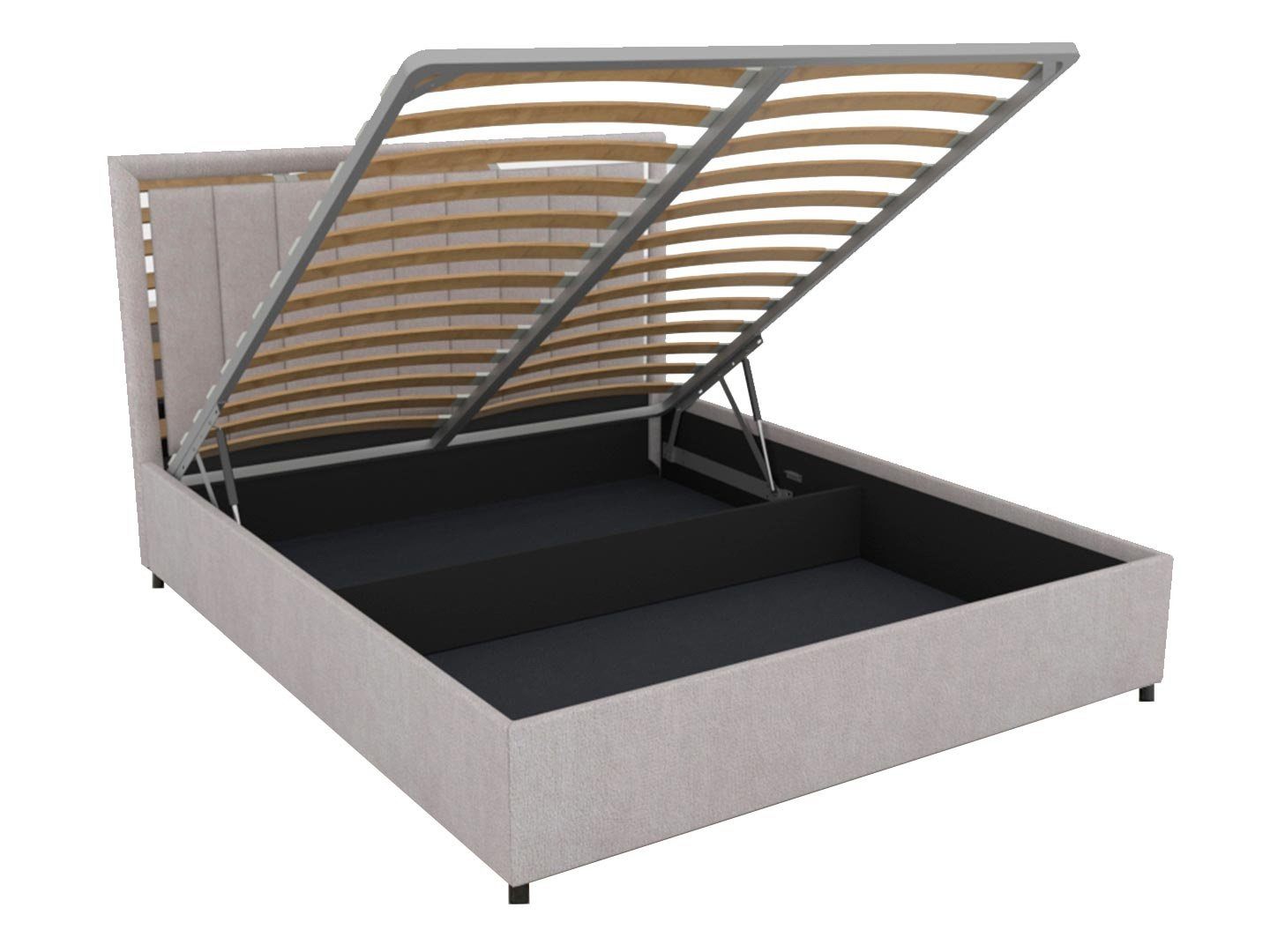 Кровать комплектуется металлическим основанием с подъемным механизмом и ящиком для белья.