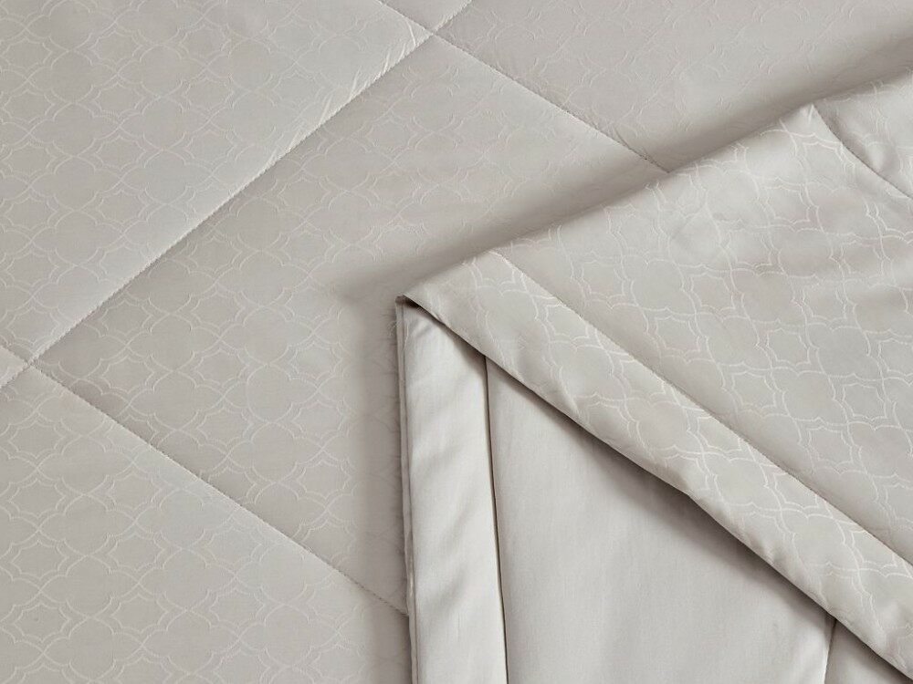 Комплект из одеяла ("одеяло-комфортер" - используется вместо пододеяльника), простыни и наволочек из хлопкового жаккарда.