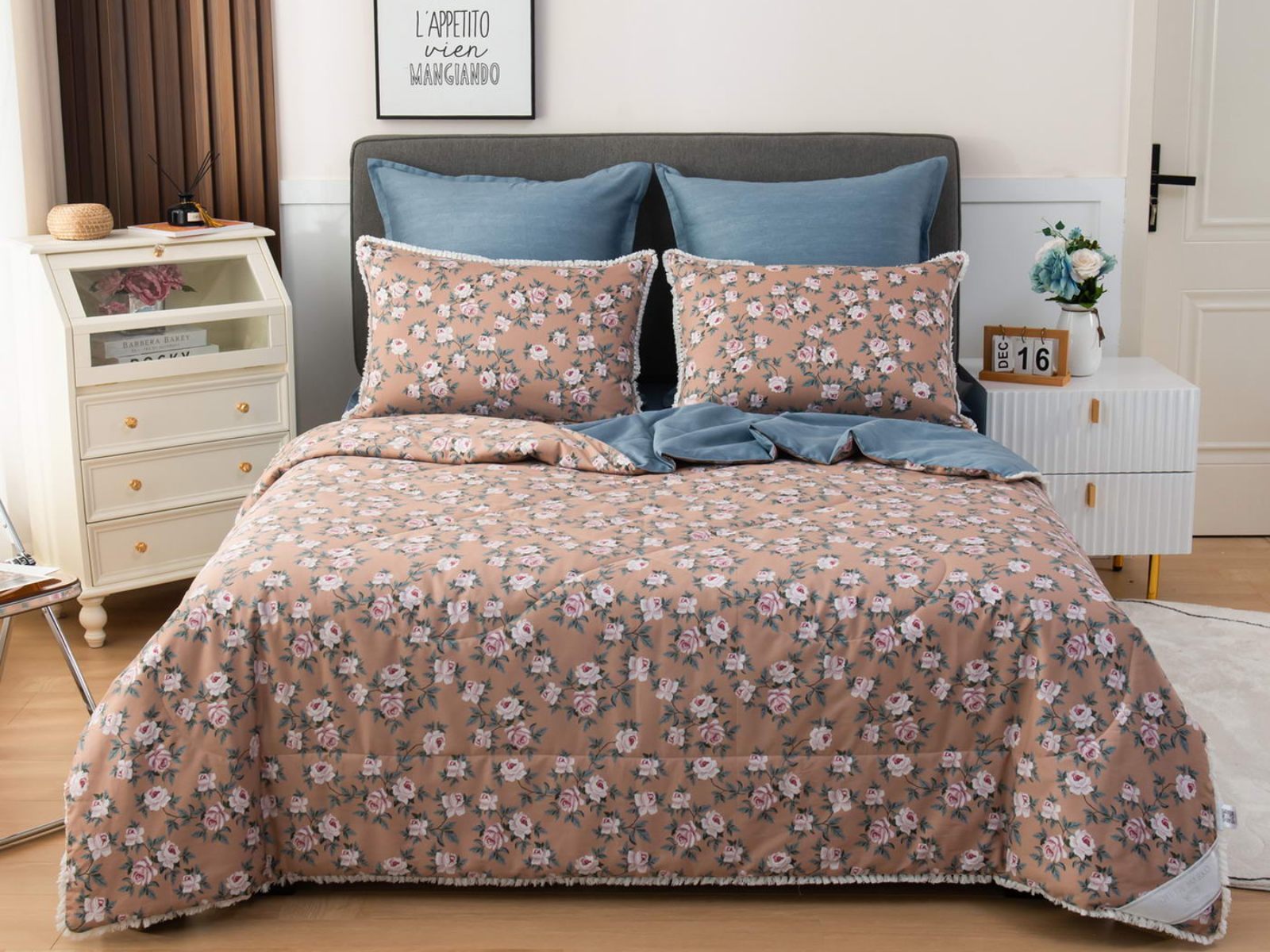 В комплекты комфортеров с одеялом Бернадетт входят наволочки, простыня и легкое всесезонное одеяло. Оцените это современное и очень удобное решение, которое идеально подходит тем, кто не любит возиться с пододеяльниками.