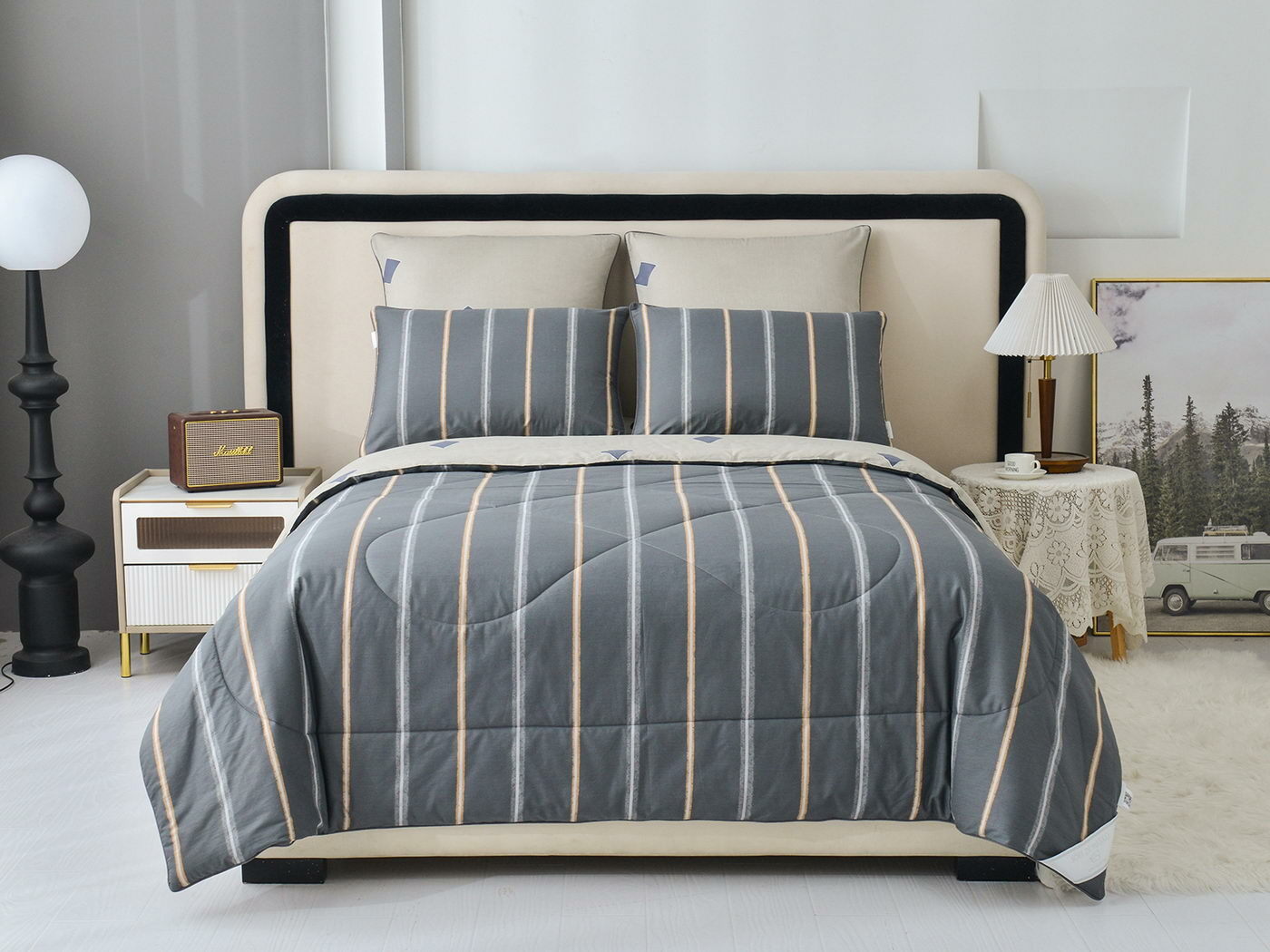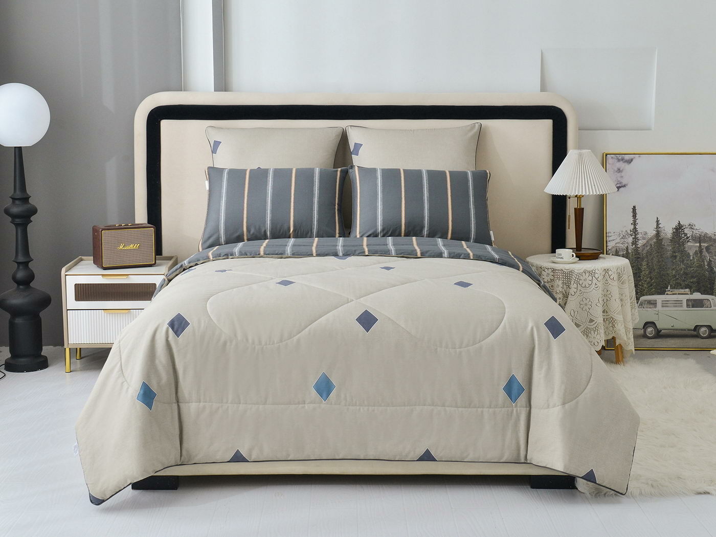 Особенность: двусторонняя модель, наволочки и одеяла декорированы кантом.