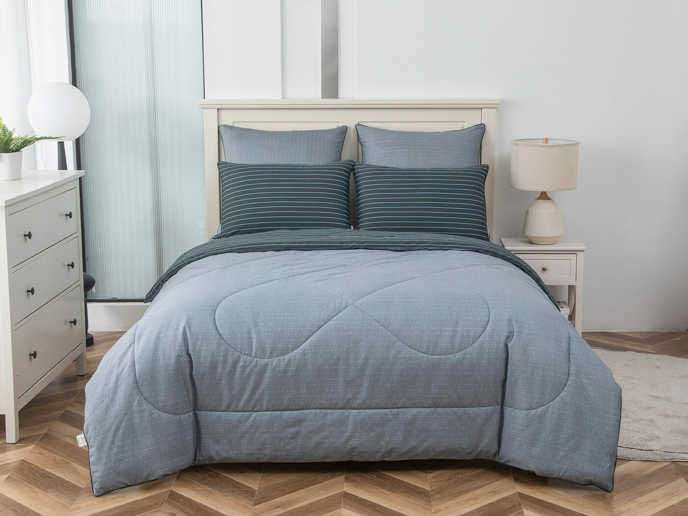 Особенность: двусторонняя модель, наволочки и одеяла декорированы кантом.