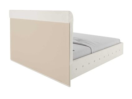 Для обивки кровати используется велюр – мягкий и бархатный материал, который дарит очень нежные соприкосновения. При стандартной комплектации обратная сторона изголовья выполняется из технического материала. Однако по желанию его можно заменить на основную обивку кровати.