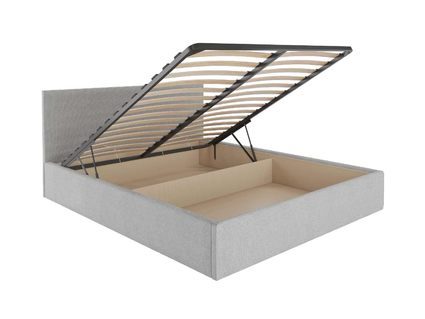 Кровать комплектуется металлическим основанием с подъемным механизмом, под которым находится вместительный бельевой ящик для хранения сезонных вещей и постельных принадлежностей.