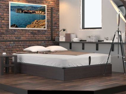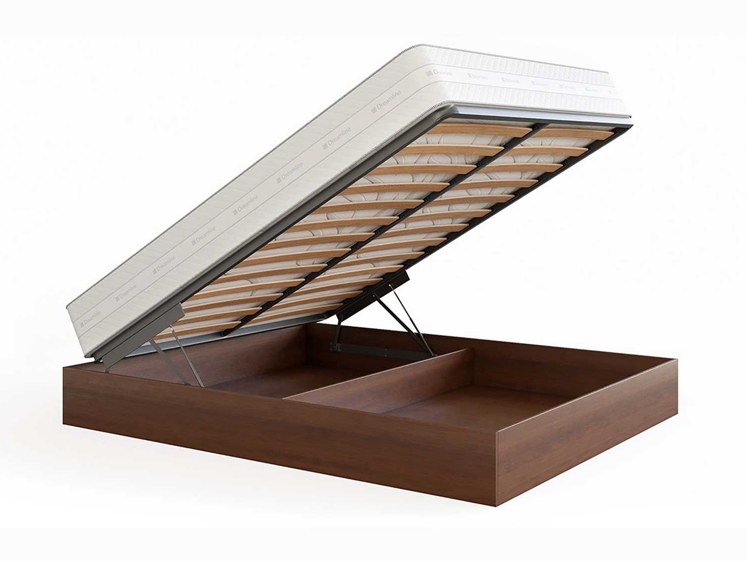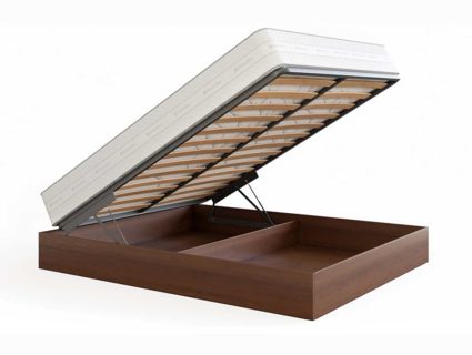 Кровать Куб представляет собой металлическое основание с ламелями из березового шпона и ящик для белья, которые соединены специальным механизмом подъема, который рассчитан под вес матраса. Ящик изготавливается из мягколиственных пород древесины (МЛПД). Стандартно предусмотрено основание Dream. Требуется сборка. Внешние габаритные размеры: - 4 см по длине и ширине.