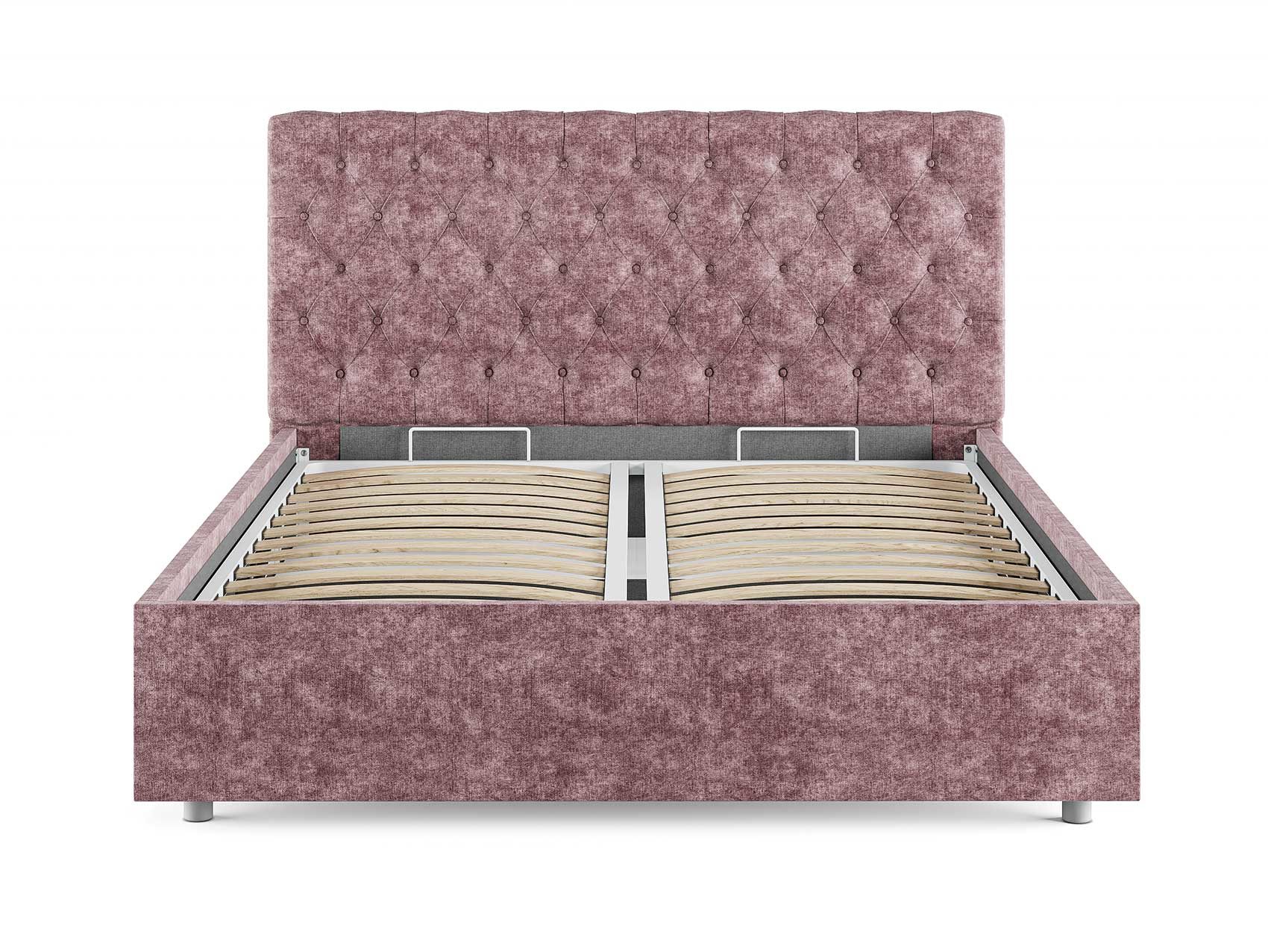 Кровать комплектуется металлическим основанием (без опор), которое имеет 13 рядов встроенных березовых ламелий на каждое спальное место, обеспечивая равномерное распределение нагрузки.