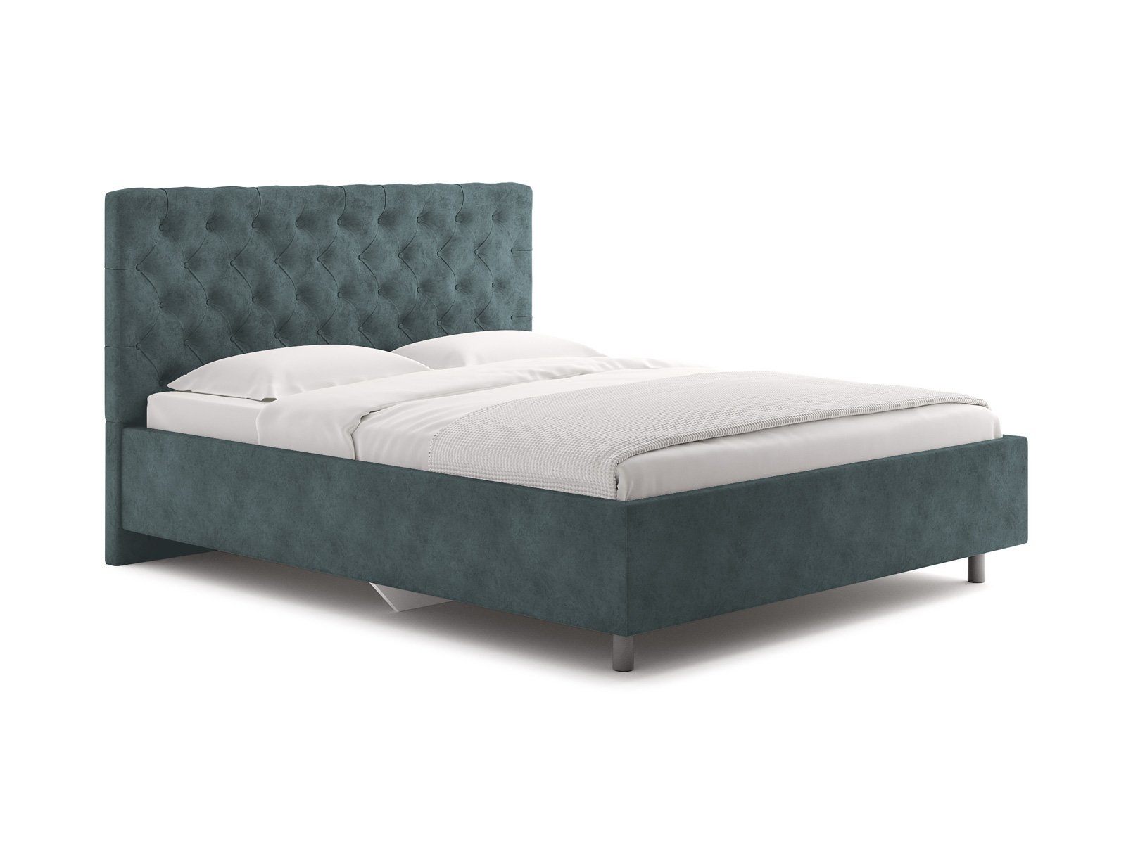 Элегантная интерьерная кровать с изголовьем, украшенным декоративными пуговицами и глубокой пиковкой. Модель изготовлена из ДСП. При необходимости кровать может быть укомплектована подъемным механизмом с бельевым ящиком или трансформируемым основанием Aquarius (размером 160-200).