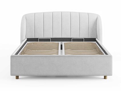 Кровать комплектуется металлическим основанием и подъемным механизмом со вместительным бельевым ящиком. Дно бельевого ящика легко сдвигается для обеспечения уборки под кроватью.