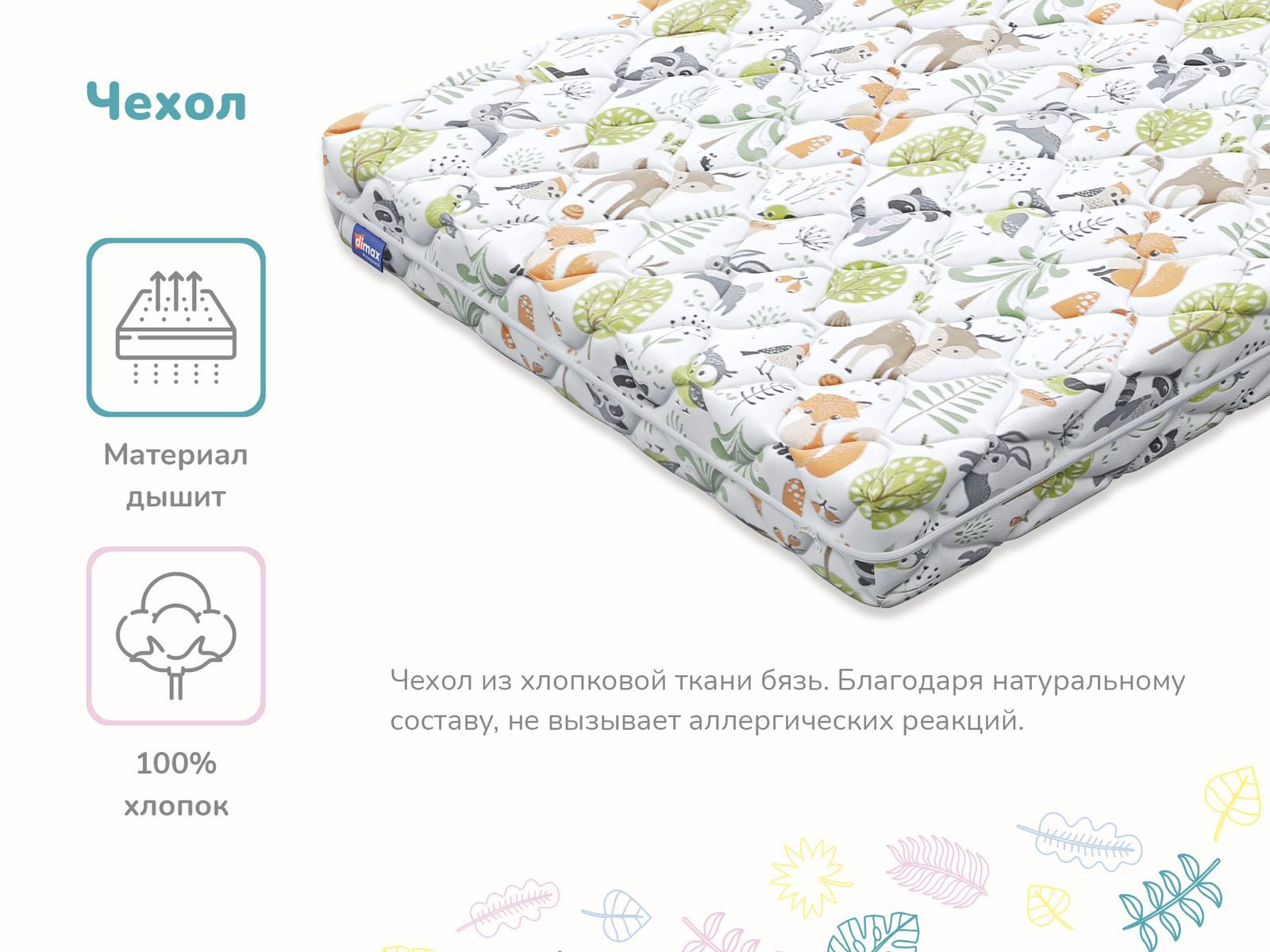 Матрас обеспечивает точечную поддержку позвоночника и позволяет ребенку спать так, как ему удобнее, а родителям – легко ухаживать за матрасом благодаря съёмному чехлу.