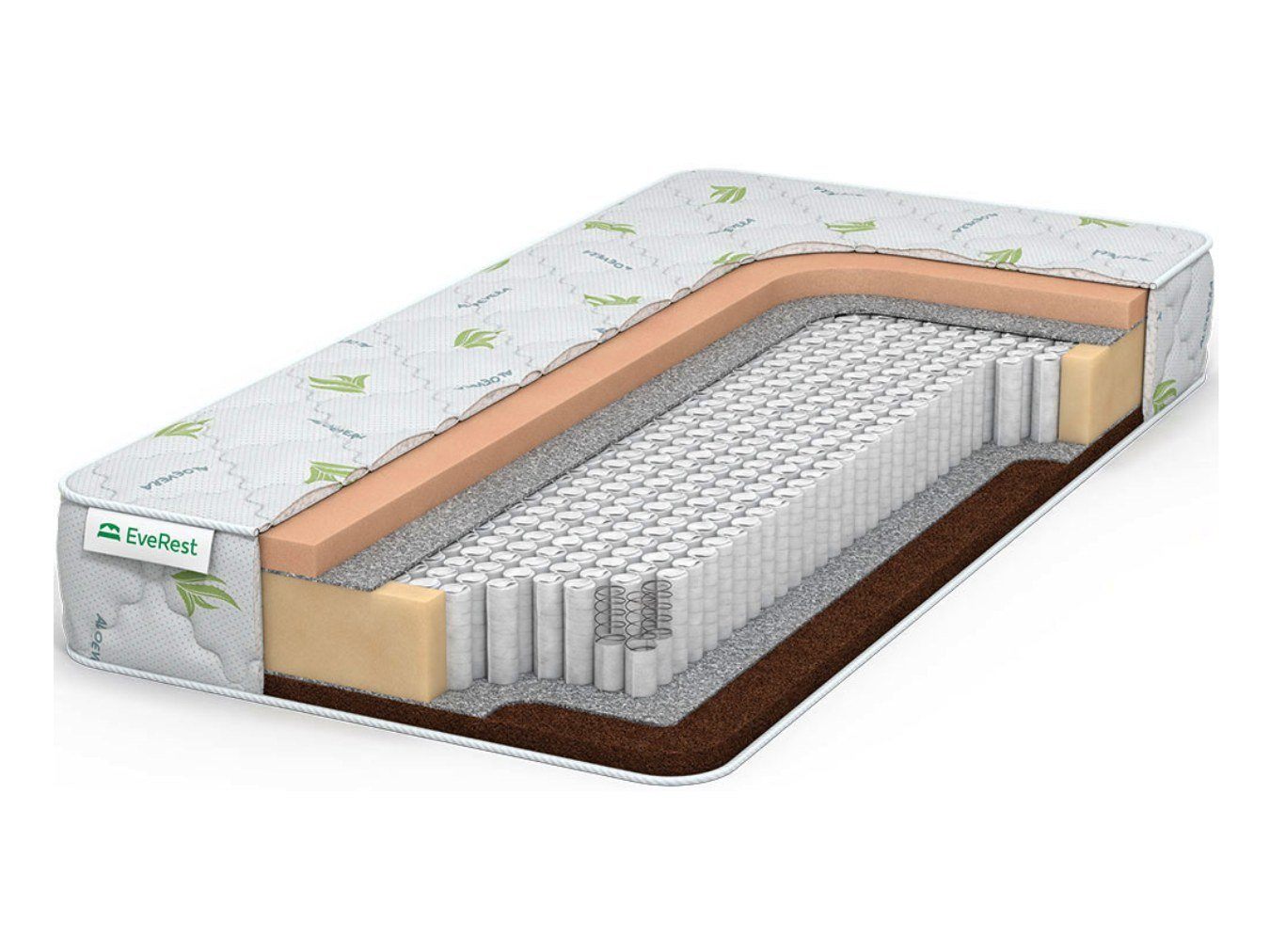 Трикотаж AloeVera – особое тканевое полотно, которое прошло пропитку экстрактом растения. Обивка изготавливается из данной ткани, которая простёгивается со всех сторон матраса.