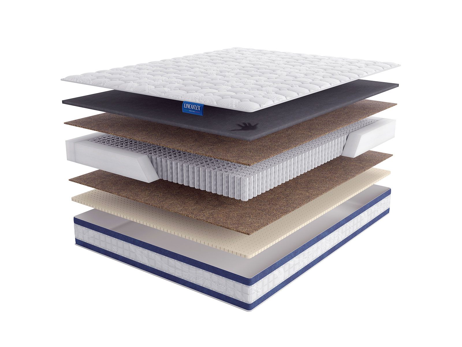 Coirflex – комфортный слой из натуральной кокосовой койры, пропитанный натуральным латексом (50% волокно кокосового ореха, 50% латекса). Гибкий и упругий, обладает ортопедическим эффектом и устойчив к нагрузкам. Придаёт жесткость матрасу.