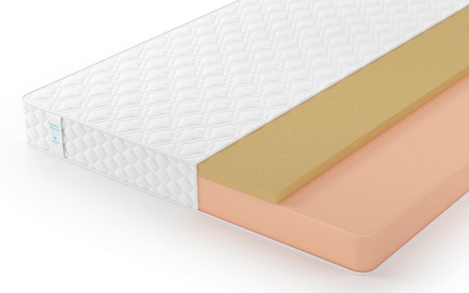 Самым мощные слоем здесь проложен искусственный латекс. Это весьма плотная, но при этом эластичная панель. Пористая структура слоя не только способствует проникновению воздуха, но и даёт возможность адаптивной подстройки под формы тела спящего. По своим качествам искусственный латекс очень схож с натуральным, поэтому если вы хоть раз проводи отдых на латексном матрасе, то ощущения будут схожими.