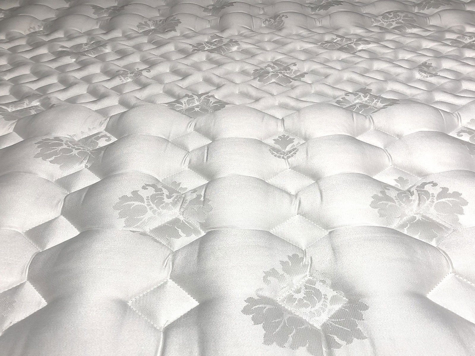 Стеганный чехол матраса и основания из жаккардовой ткани – 55% вискоза, 45% хлопок. Объемный дизайн стежки обеспечивает дополнительный комфорт во время сна. Технология объемной стежки полностью устраняет эффект проваливания, гарантируя спокойный здоровый сон и максимально комфортные ощущения.