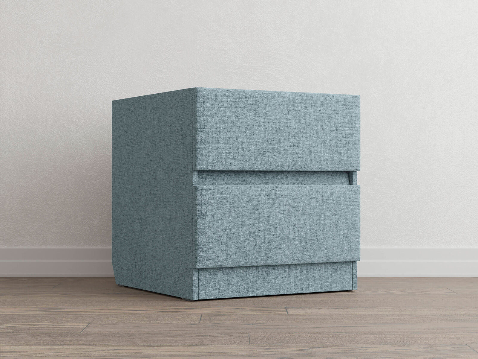 Тумба Omega выполнена в современном стиле. Прямые линии, отсутствие ручек и просвета от пола, делают ее универсальной, позволяя комплектовать тумбы с кроватями, имеющими лаконичное современное изголовье. Два выдвижных ящика с направляющими скрытого монтажа оснащены доводчиками. Задняя стенка выполнена из ДСП и обита спанбондом, что делает тумбу устойчивой и прочной. Тумба имеет скос под плинтус, что позволяет устанавливать ее вплотную к стене. Тумбу дополнительно можно укомплектовать стеклянной столешницей. Широкий выбор фактур и цветов исполнения.