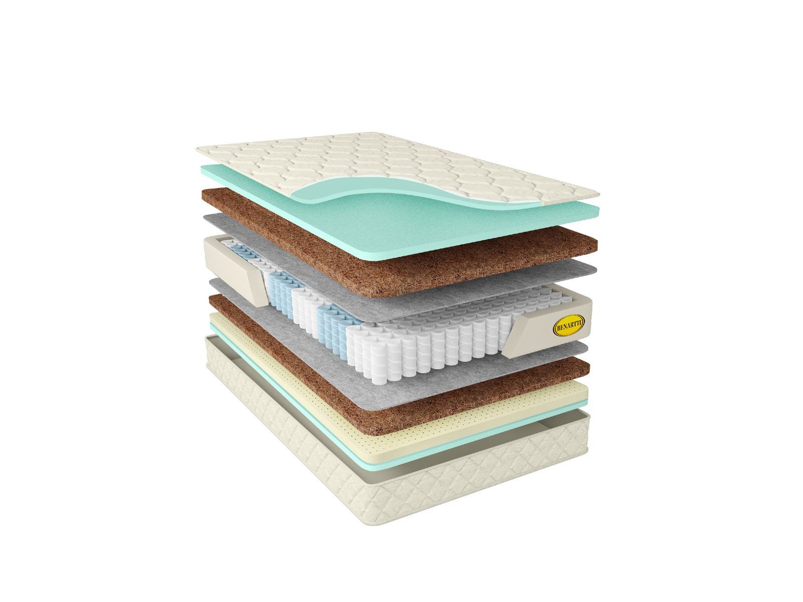 Каждая из поверхностей матраса представлена латексом и кокосовой койрой. Однако с одной поверхности установлен натуральный латекс, а с другой – искусственный. Синтетический аналог отличается большей жёсткостью. Однако оба варианта плиты оказывают приятную поддержку. Койра естественным образом продолжает работу пружин и усиливает ортопедический эффект своей равномерной поддержкой.
