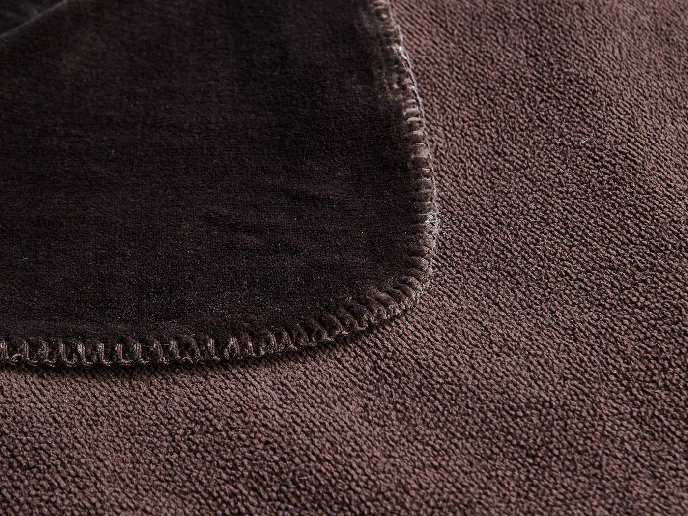 Изделие выполнено из 100% вискозы, такой материал хорошо впитывает влагу, сохраняет тепло и дарит чувство комфорта. Края изделия обработаны декоративной стежкой.