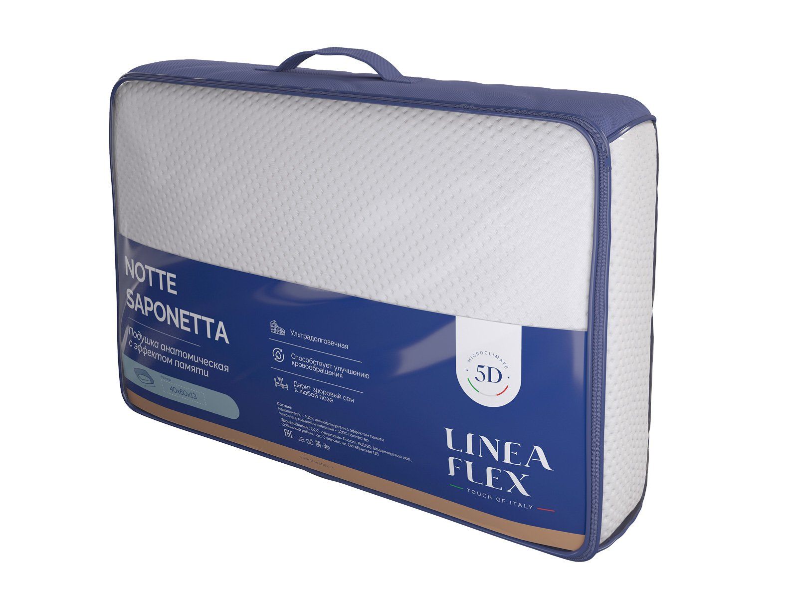 Notte Saponetta – анатомическая подушка с эффектом памяти. Классическая форма, подходит для сна в любой позе.