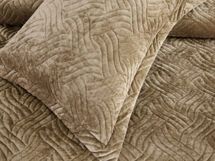 Покрывала «Деварта»: нежность и уют в вашем доме Окунитесь в мир комфорта и изысканности с новой коллекцией мягких бархатных покрывал «Деварта». Эти изделия станут настоящим украшением вашей спальни, добавив ей уюта и элегантности. Покрывала изготовлены из высококачественного бархата, который приятен на ощупь и обладает нежной бархатистой текстурой. Они устойчивы к износу и надолго сохраняют свой привлекательный внешний вид, яркость цвета и мягкость. Благодаря прочной и качественной декоративной стёжке «косичка» наполнитель надёжно зафиксирован внутри изделия. «Деварта» представлена в пяти оттенках: от тёплого бежевого до спокойного серо-голубого. Вы сможете подобрать идеальный вариант для вашего интерьера. Размерный ряд включает два варианта, что позволяет выбрать покрывало, которое идеально подойдёт для вашей кровати или дивана. В комплект входят две наволочки размером 50х70 см. Каждое покрывало аккуратно обшито кантом, а наволочки украшены милыми ушками шириной 5 см. Это придаёт изделиям особый шарм и делает их ещё более привлекательными. Не упустите возможность приобрести эти замечательные покрывала и создать в своём доме атмосферу тепла и уюта. «Деварта» подарит вам не только эстетическое наслаждение, но и незабываемые ощущения при каждом прикосновении.