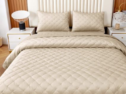 В комплект входят покрывало и одна либо две наволочки (50х70 см) из аналогичного материала в зависимости от размера.