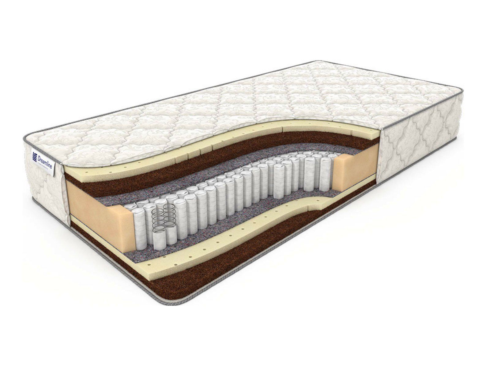 Матрас Prime Mix S1000 достаточно высокий (26 см) и выдерживает большие нагрузки (до 140 кг на спальное место). Модель сконструирована на пружинном модуле, в котором установлено 530 не соединенных между собой пружин, позволяющих равномерно распределять нагрузку по поверхности. В качестве наполнения используется по слою латексированной кокосовой койры и натурального латекса с обеих сторон, причем с одной стороны верхним слоем является койра, что придает ей жесткость выше средней, а с другой сверху располагается латекс - эта сторона имеет среднюю жесткость. Матрас Prime Mix S1000 оснащен чехлом из хлопкового жаккарда, простеганного на антиаллергенном холконе 250 гр./м2, в который можно бесплатно вшить смотровую молнию.