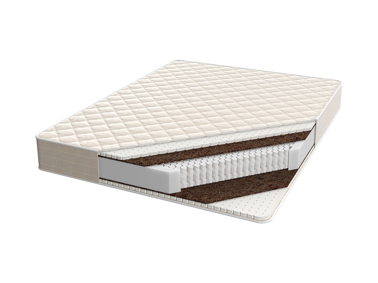 Сочетание наполнителей: латексная пена + кокосовая койра делают данную модель матраса одной из самых востребованных и ходовых, и обеспечивают изделию средний уровень жёсткости.
